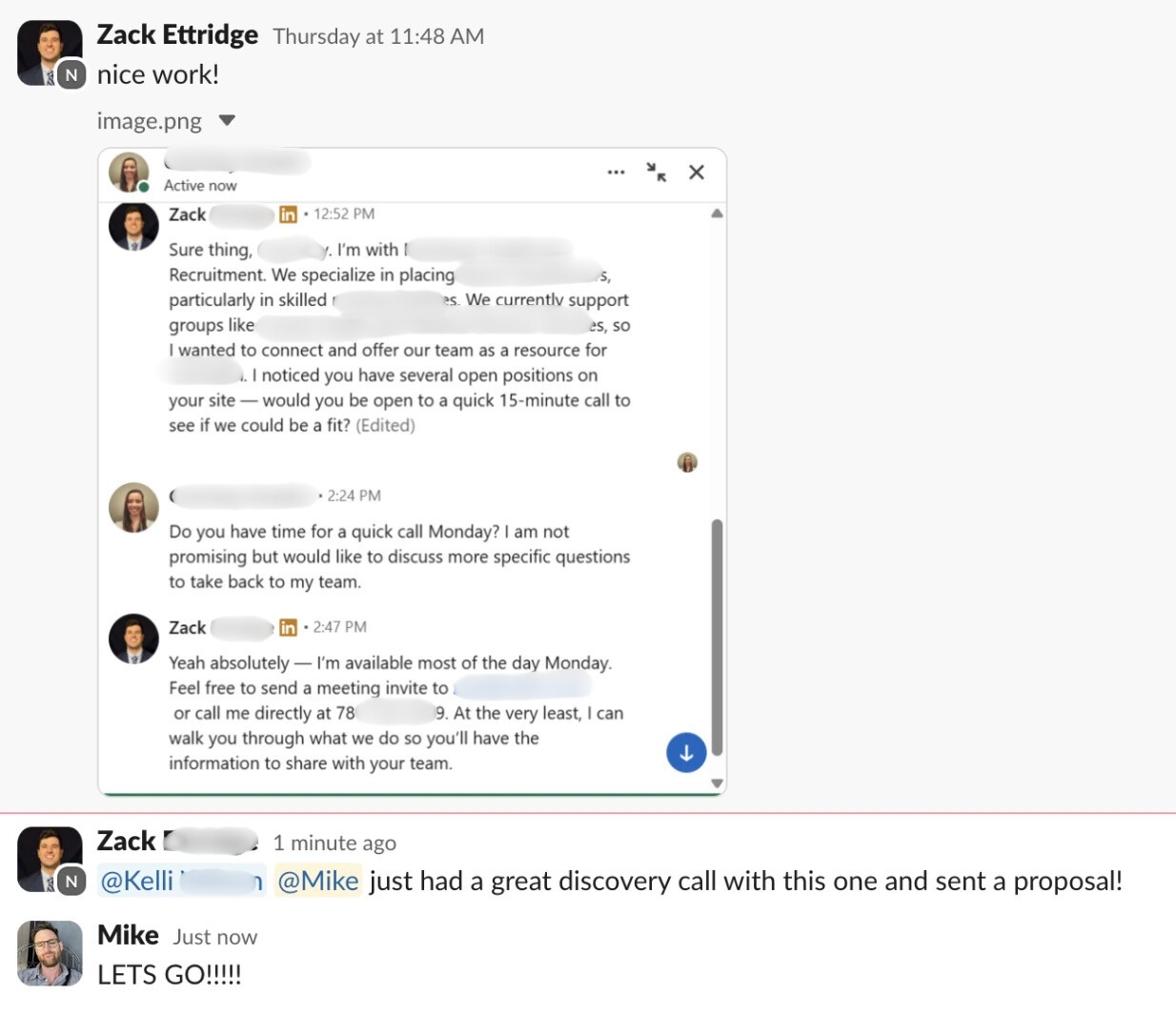These are real conversations pulled directly from the Recruiter Collective showcasing recruiters, like you, predictably booking calls, sending proposals and CLOSING DEALS!