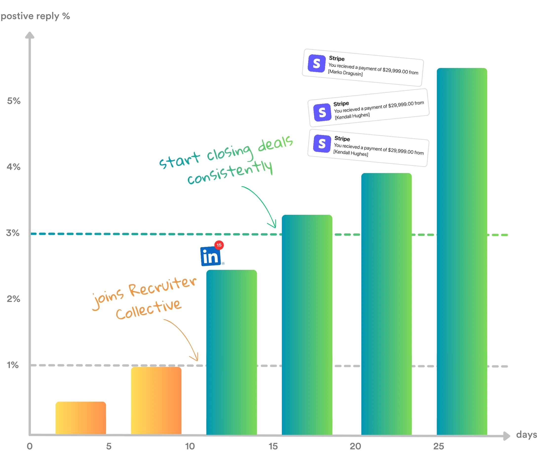Inside the Recruiter Collective, reply rates improve because outbound is reviewed, corrected, and repeated with guidance and accountability.